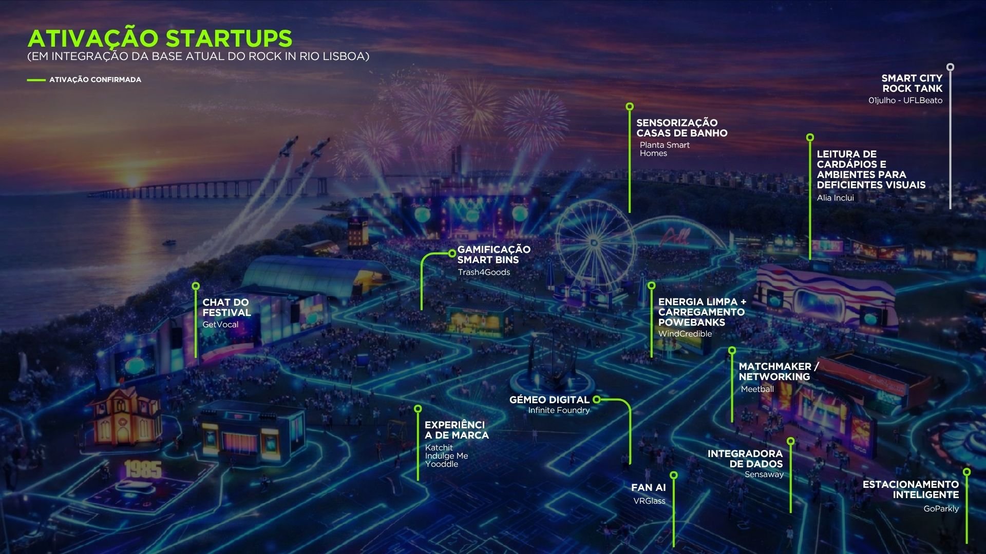 - AS SOLUÇÕES SERÃO IMPLEMENTADAS E AVALIADAS NA CIDADE DO ROCK, PERMITINDO RECOLHER DADOS E VALIDAR TECNOLOGIAS NUM AMBIENTE QUE RECEBE DIARIAMENTE DEZENAS DE MILHARES DE PESSOAS, COM POTENCIAL DE REPLICAÇÃO FUTURA EM CIDADES EM NÍVEL INTERNACIONAL;